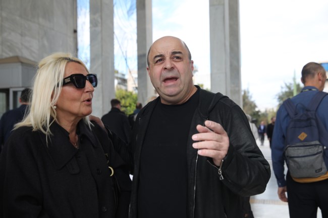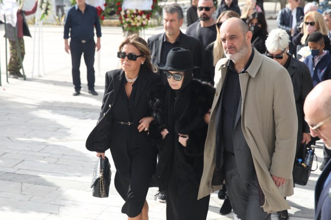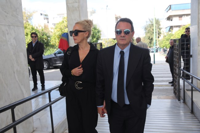 Τραγική φιγούρα η σύζυγός του, Ελένη Μαρούδα, που έδωσε το “παρών” υποβασταζόμενη, ενώ συντεριμμένη είναι και η κόρη τους, Νίκη.