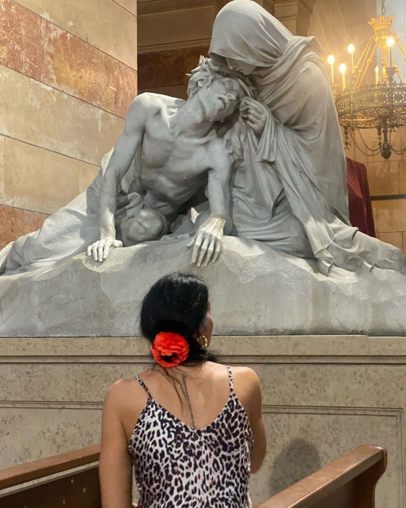 Στο προφίλ της στο Instagram, ανάρτησε μερικές φωτογραφίες όπου ποζάρει φορώντας ένα λεοπάρ φόρεμα μπροστά από αξιοθέατα και μνημεία της πόλης αλλά και με φόντο το λιμάνι.