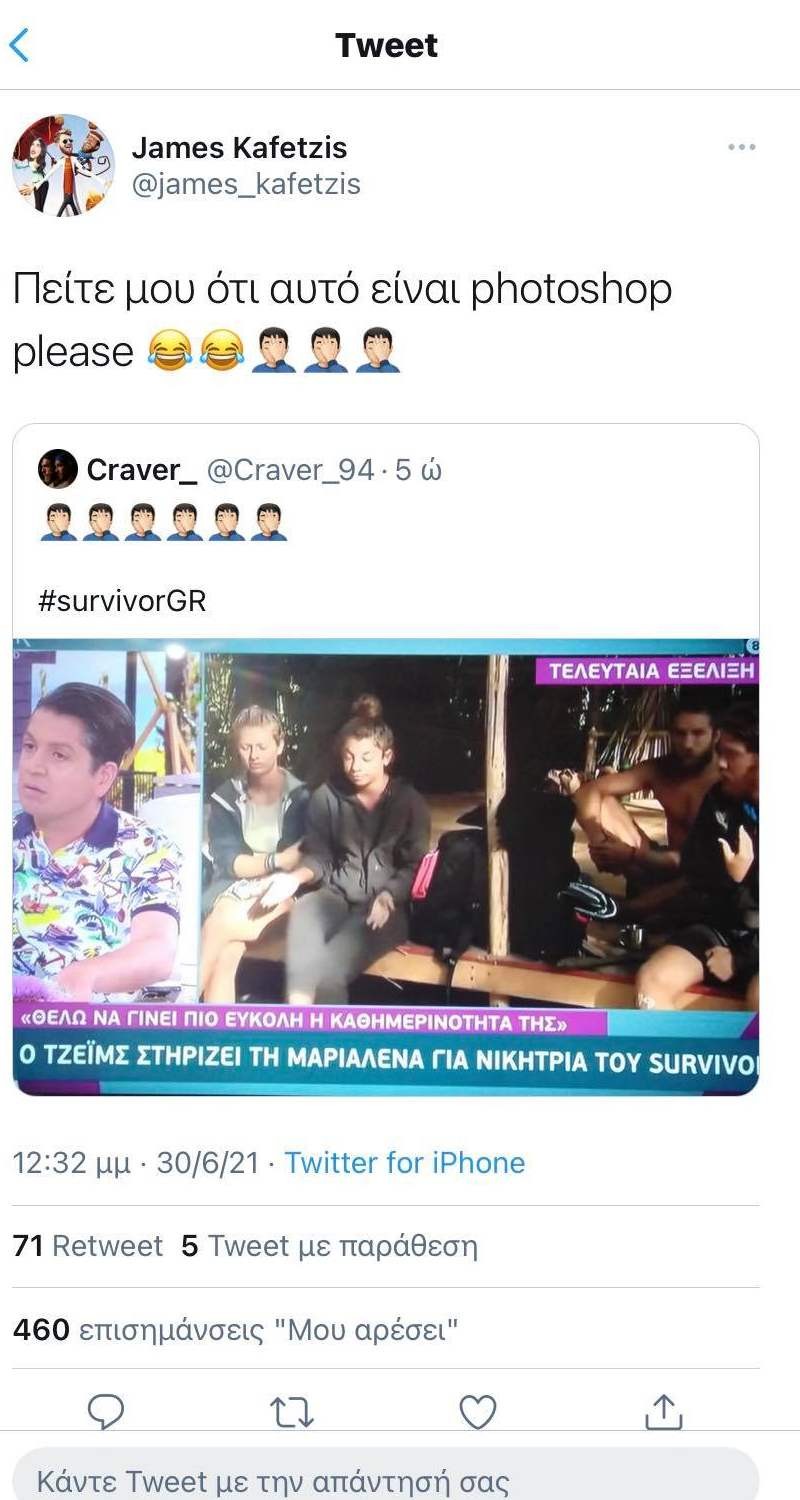 Ο ίδιος παρακολούθησε το συγκεκριμένο ρεπορτάζ και απορημένος προχώρησε σε ένα tweet, γράφοντας χαρακτηριστικά: «Πείτε μου ότι αυτό είναι photoshop please».