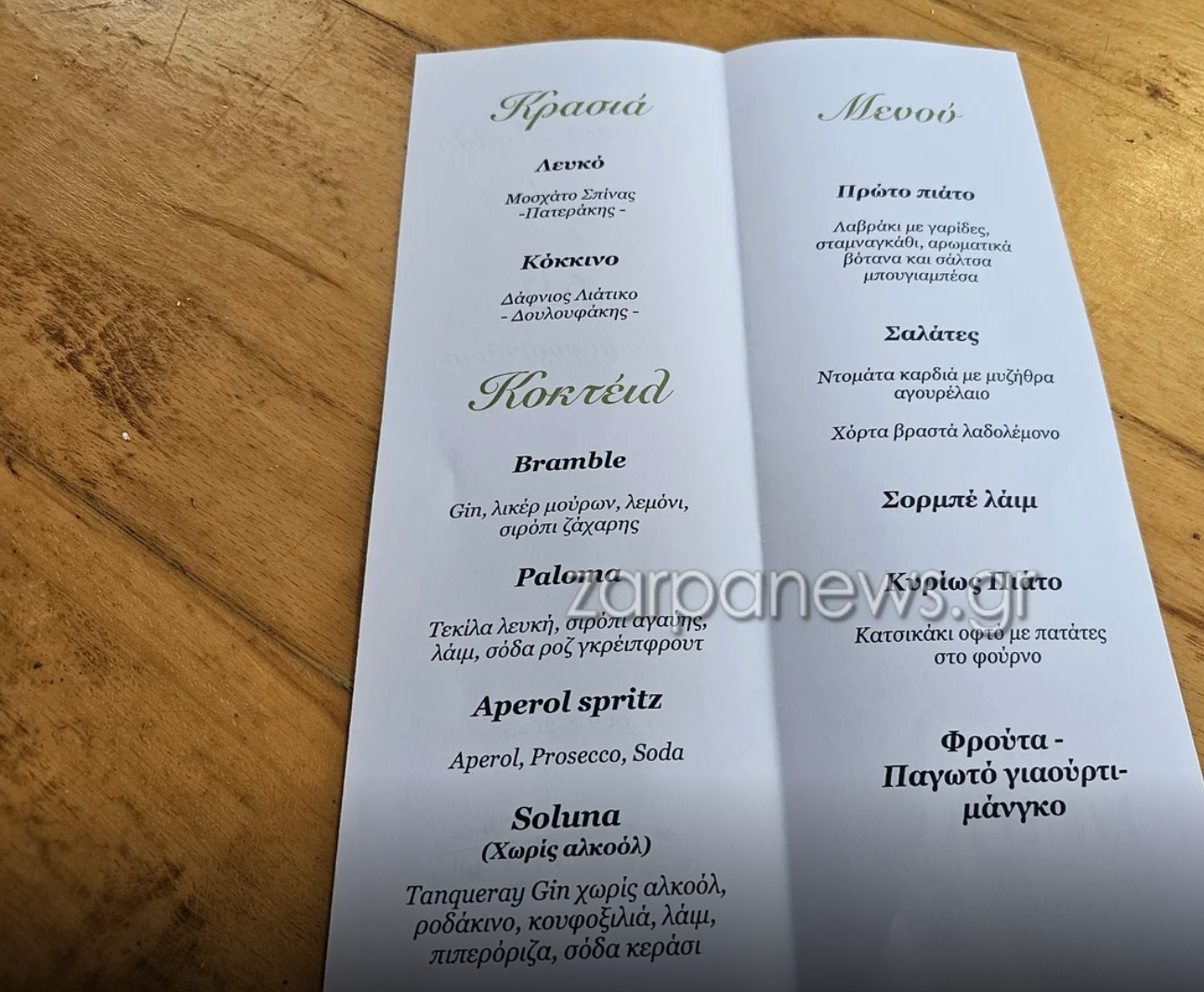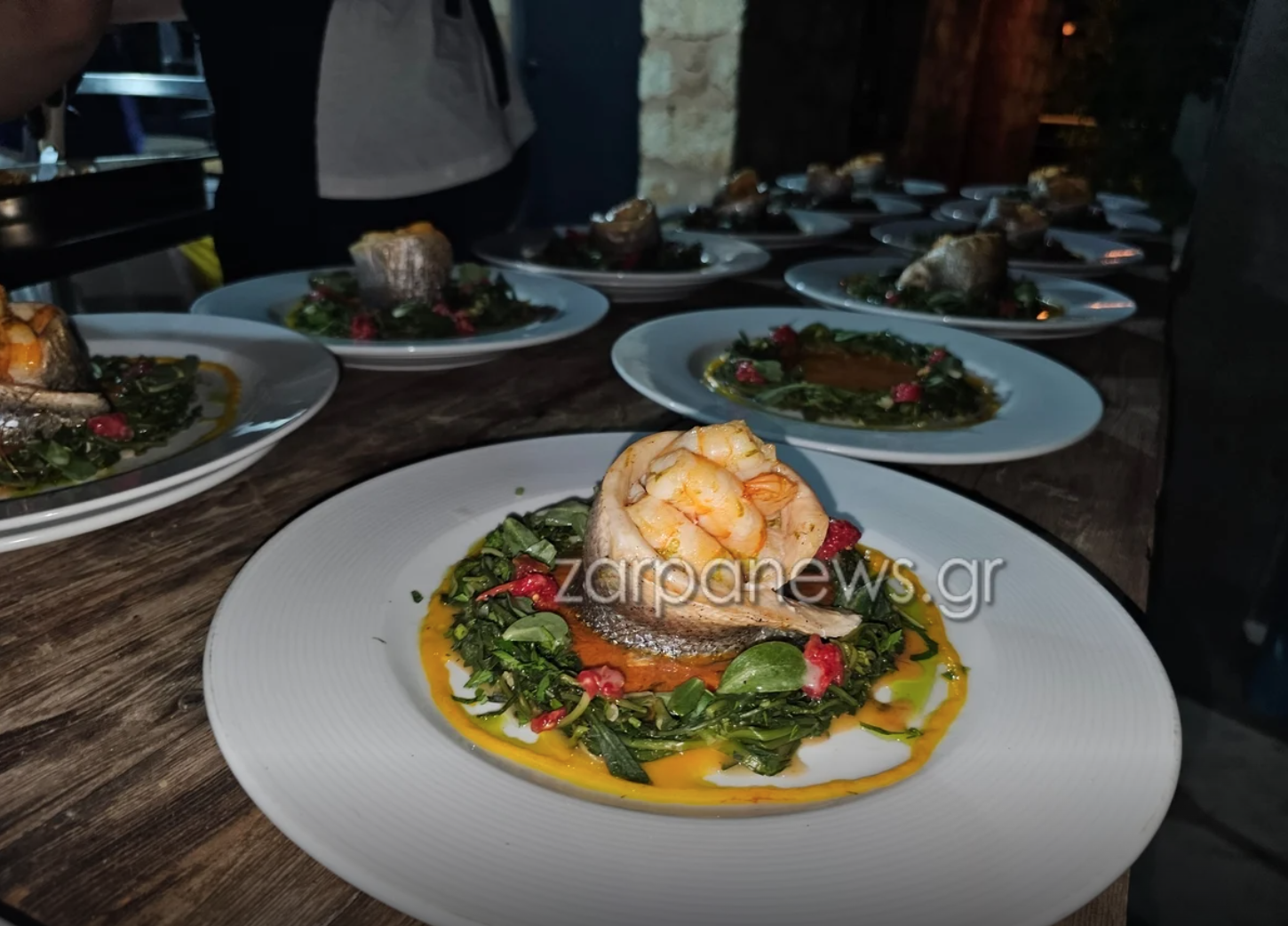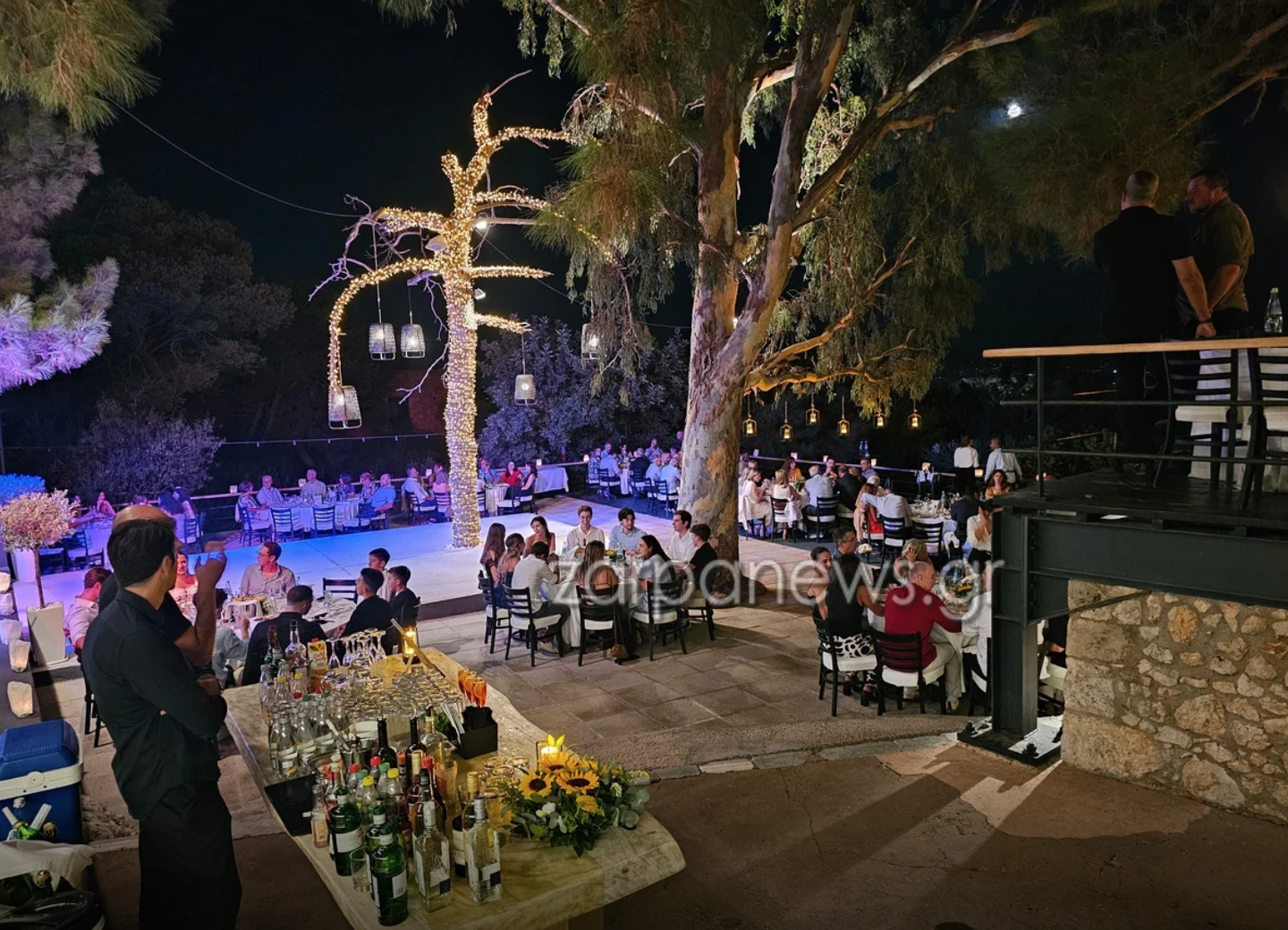 Οι εκλεκτοί καλεσμένοι, μεταξύ των οποίων ο πρώην πρέσβης των ΗΠΑ στην Ελλάδα Τζορτζ Τσούνης, απόλαυσαν αρχικά ένα από τα signature cocktails πριν περάσουν στο δείπνο το οποίο περιλάμβανε λαβράκι με γαρίδες, σταμναγκάθι, αρωματικά βότανα και σάλτσα μπουγιαμπέσα, σαλάτα ντομάτα με μυζήθρα και αγουρέλαιο, χόρτα βραστά λαδολέμονο, ενώ ως κυρίως σερβιρίστηκε κατσικάκι οφτό με πατάτες στον φούρνο.
