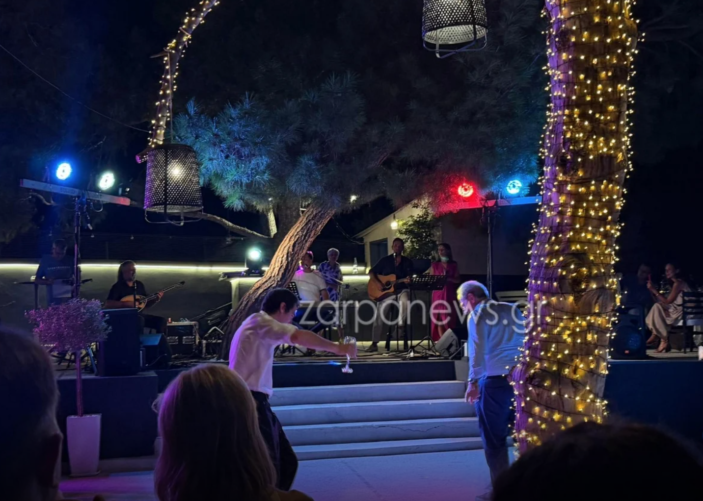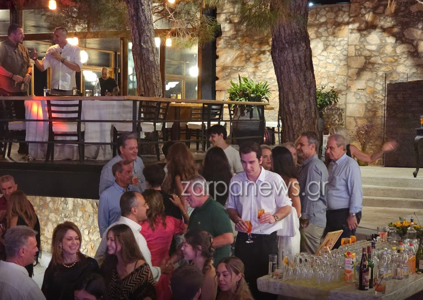 Το μουσικό κομμάτι της βραδιάς ανέλαβε ο δημοφιλής καλλιτέχνης Νίκος Βέρτης με μέλη της ορχήστρας του και τον ίδιο να παίζει κιθάρα, αλλά και με τον εορτάζοντα να χορεύει ζεϊμπέκικο όπως φαίνεται στις φωτογραφίες του zarpanews.gr.