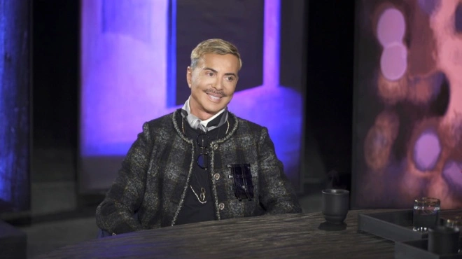 Ο διάσημος σχεδιαστής ρούχων κάνει, γενικότερα, εκκεντρικές εμφανίσεις, αλλά αυτή τη φορά ξάφνιασε την παρουσιάστρια, αφού επέλεξε να φορέσει μία ολόσωμη φόρμα με ψεύτικους κοιλιακούς και ζεβρέ print στα μανίκια και στα μπατζάκια παντελόνι. Μάλιστα, μόλις στάθηκε δίπλα της, άρχισε να κάνει κοιλιακούς.