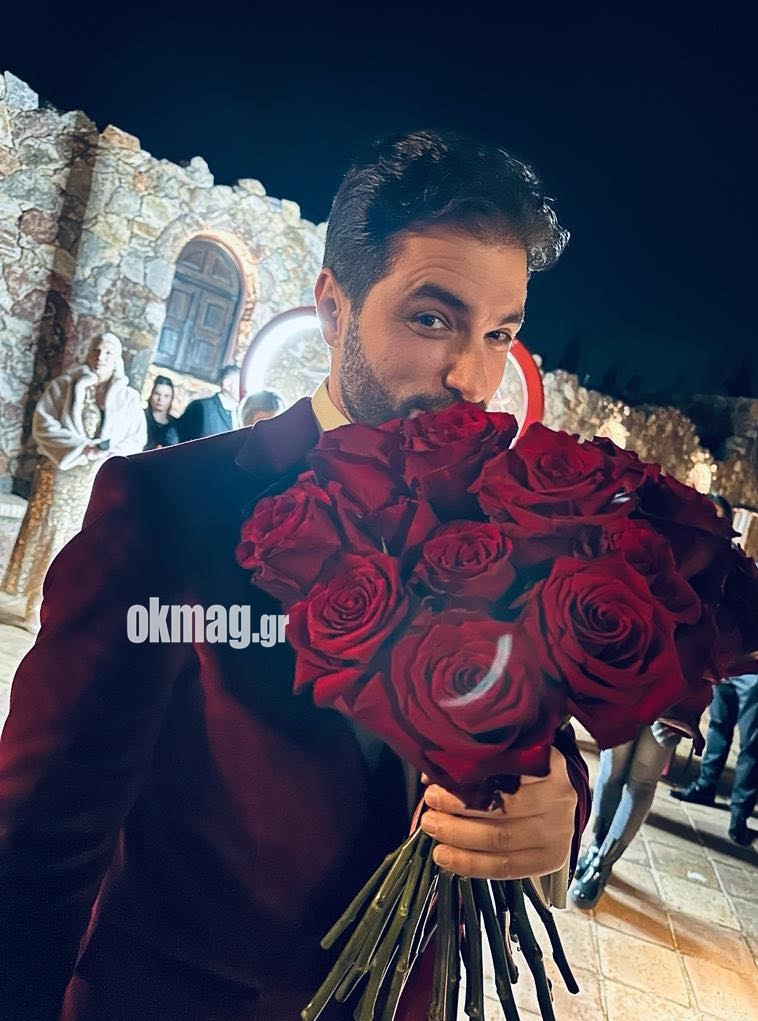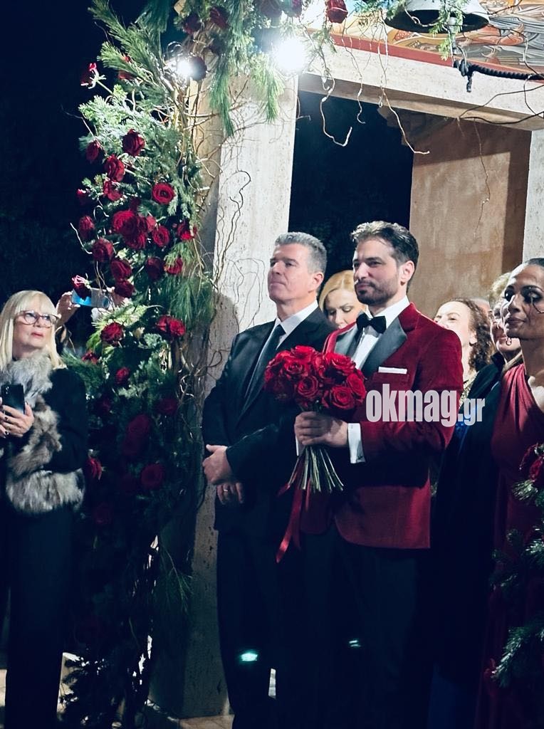 Στις φωτογραφίες που εξασφάλισε το okmag, φαίνεται ο εντυπωσιακός στολισμός της εκκλησίας, ο τραγουδιστής που κρατάει την κατακόκκινη ανθοδέσμη όσο περιμένει την νύφη, αλλά και η ραδιοφωνική παραγωγός που έφτασε, φορώντας ένα εντυπωσιακό νυφικό από την σχεδιάστρια Όλγα Καραβερβέρη.