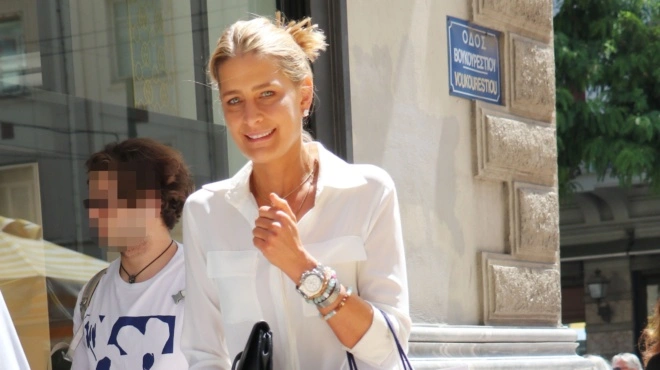 Πριν μερικές μέρες, η πρώην νύφη του τέως βασιλιά Κωνσταντίνου έκανε μια εμφάνιση στο κέντρο της Αθήνας, φορώντας ένα εφαρμοστό λευκό τζιν παντελόνι καμπάνα και ένα πορτοκαλί πουκάμισο δεμένο στη μέση της, σνίκερς και την αγαπημένη της καφέ δερμάτινη τσάντα.