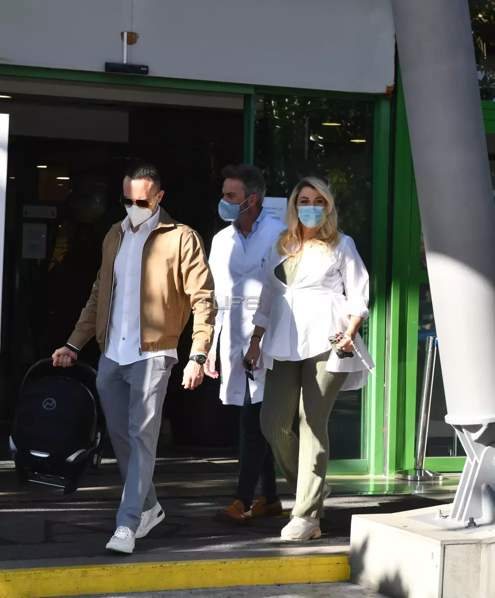 Στις παρακάτω φωτογραφίες εμφανίζεται το ζευγάρι, με τον επιχειρηματία να κρατά στα χέρια του το καλαθάκι με τον γιο τους. Ο Πέτρος Χόντος ήταν εκεί και κατέγραψε καρέ καρέ την έξοδο του ζευγαριού από το μαιευτήριο.