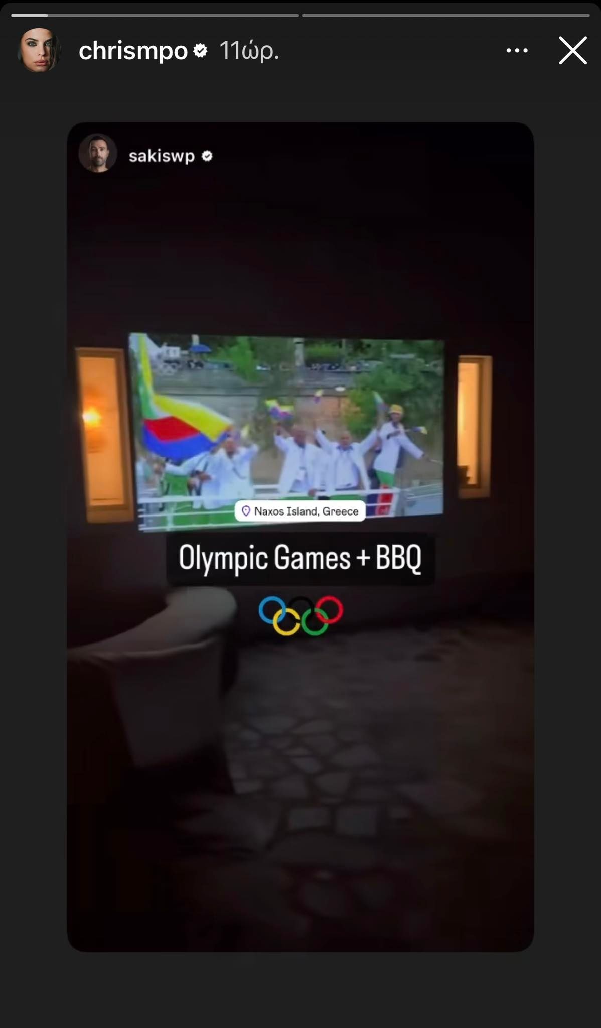 Πρόσφατα, χθες, Παρασκευή, το βράδυ, στο σπίτι όπου διαμένουν στη Νάξο, είχαν διοργανώσει μια ξεχωριστή βραδιά, προκειμένου να δουν με καλούς φίλους του Ολυμπιακούς Αγώνες, κάνοντας μπάρμπεκιου και σχολιάζοντας τη τελετή έναρξης.