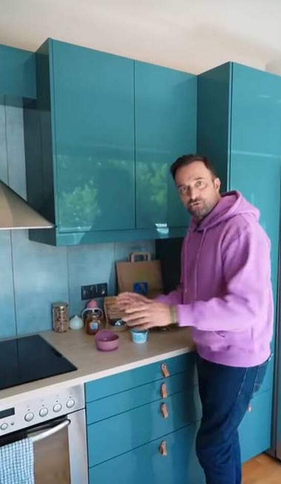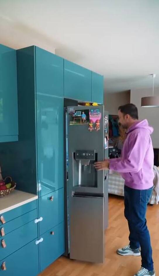 Αυτό, όμως που μας ενθουσίασε ήταν η τιρκουάζ κουζίνα, η οποία είναι βγαλμένη από περιοδικό. Όπως θα δείτε, ο χώρος διαθέτει αρκετά ντουλάπια αποθήκευσης, ενώ στα συρτάρια, ο Γιώργος Λιανός και η Κωνσταντίνα Καραλέξη έχουν τοποθετήσει ειδικά εξαρτήματά ώστε να μην μπορεί η μικρή Βαλέρια – Ασημούλα να τα ανοίξει.