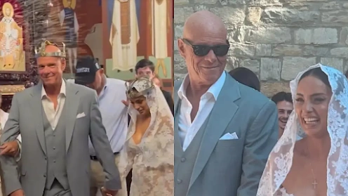 Έπειτα οδηγήθηκαν στην εκκλησία όπου ξεκίνησε το μυστήριο, όμως την ώρα που οι δυο τους χόρευαν τον χορό του Ἡσαΐα, όπως φάνηκε στα βίντεο που διέρρευσαν μέσα από τα social media, το ζευγάρι φορούσε κορόνες, κάτι που προκάλεσε αίσθηση και έκανε πολλούς να απορήσουν.