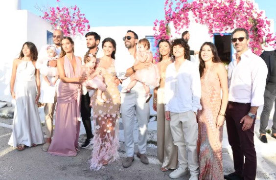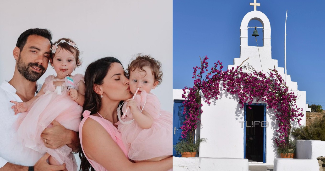 Ο Σάκης Τανιμανίδης και η Χριστίνα Μπόμπα βάφτισαν τις δίδυμες κόρες τους, Αριάνα και Φιλίππα στη Μύκονο υπό την παρουσία συγγενών και φίλων.