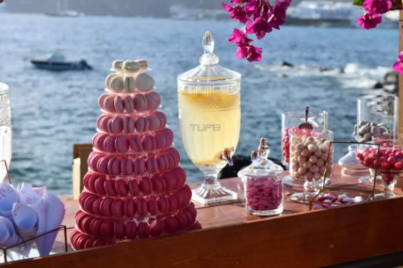 Συγκεκριμένα το μυστήριο τελέστηκε στον Ιερό Ναό της Αγίας Άννας, στον Πλατύ Γιαλό της Μυκόνου. Όπως θα δείτε από τις φωτογραφίες που κατέγραψε το tlife, το ροζ χρώμα είναι αυτό το οποίο κυριαρχεί στα γλυκίσματα, ενώ το ζευγάρι επέλεξε μια λιτή διακόσμηση με θέα το απέραντο μπλε.
