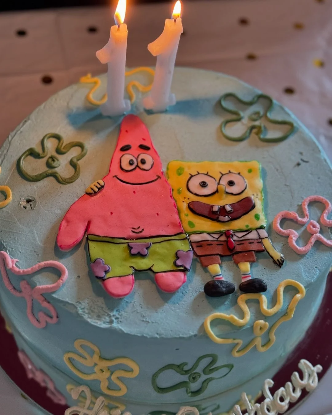 Μάλιστα, η ηθοποιός μοιράστηκε στιγμιότυπα στον προσωπικό της λογαριασμό στο Instagram, με την τούρτα γενεθλίων που είχε πάνω της τον Μπομπ Σφουγγαράκη και τον Πάτρικ, που είναι οι αγαπημένοι ήρωες της γενεθλιάζουσας, να τραβάει τα βλέμματα όλων.