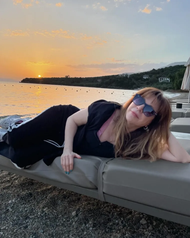 Αυτήν τη φορά, η καλλιτέχνης, που ασχολείται με την υποκριτική, τη λογοτεχνία και τη συγγραφή σεναρίων, απολάμβανε την παρουσία της σε μια απόμερη παραλία, όπου πόζαρε αναπαυτικά, με το ηλιοβασίλεμα να δημιουργεί έναν εντυπωσιακό φόντο.