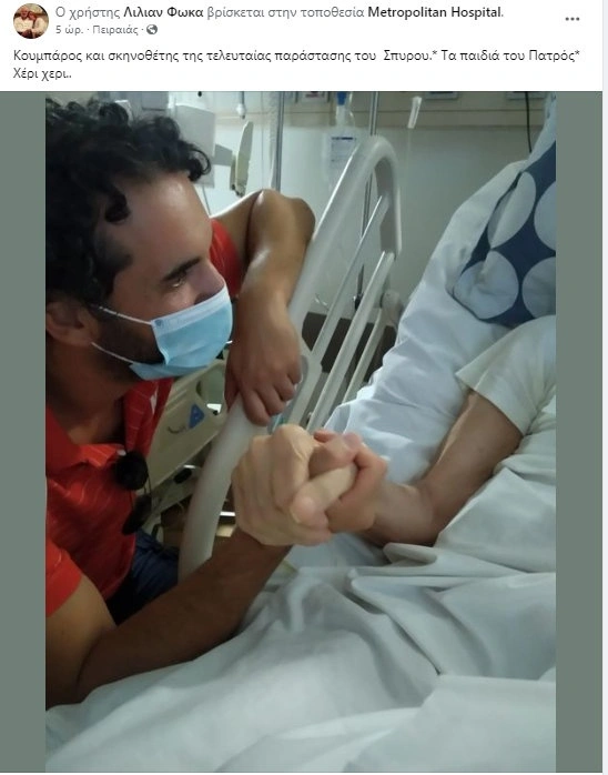 «Κουμπάρος και σκηνοθέτης της τελευταίας παράστασης του Σπύρου.* Τα παιδιά του Πατρός* Χέρι χερι…» έγραψε στη λεζάντα της φωτογραφίας όπου απεικονίζεται ο κουμπάρος τους να κρατάει σφιχτά το χέρι του Σπύρου Φωκά ο οποίος ευτυχώς έχει βγει από την εντατική.