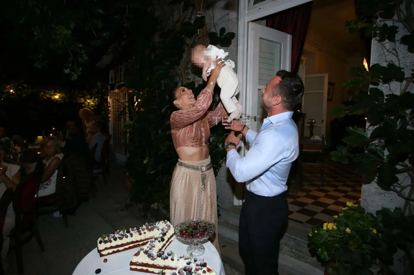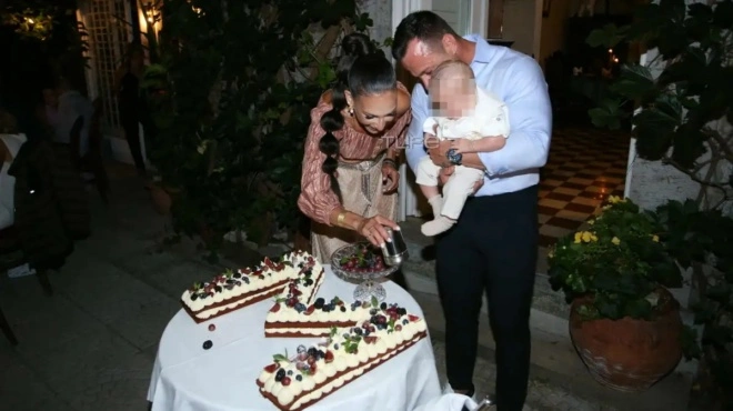 Η Ανθή Βούλγαρη έλαμπε ευτυχία, κρατώντας στην αγκαλιά της τον μικρό Μάριο, ενώ ο Κώστας Κωνσταντινίδης δεν έκρυβε τη συγκίνησή του καθ’ όλη τη διάρκεια του μυστηρίου.