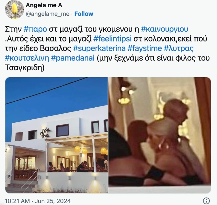Παρά την ευχάριστη εξέλιξη στην προσωπική της ζωή, η Κατερίνα Καινούργιου τηρεί διακριτική στάση, αποφεύγοντας να μοιραστεί λεπτομέρειες δημοσίως. Ωστόσο, πληροφορίες αναφέρουν ότι το τριήμερο του Αγίου Πνεύματος το ζευγάρι ταξίδεψε μαζί στην Πάρο. Εκεί, πέρασαν όμορφες στιγμές, ενώ ήταν ιδιαίτερα προσεκτικοί στις δημόσιες εμφανίσεις τους.