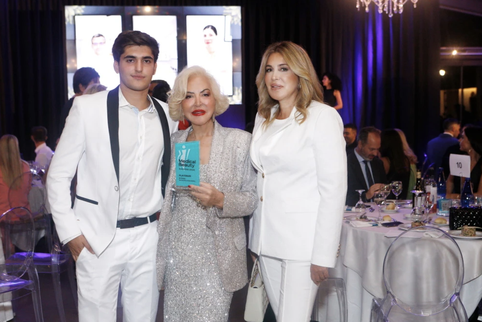 Η Ρία Πρίνου, ιδιοκτήτρια της Dr Prinou, παρέλαβε το βραβείο, εντυπωσιάζοντας με την εμφάνισή της. Η επιχειρηματίας επέλεξε ένα αστραφτερό σύνολο σε ασημί αποχρώσεις, συνδυάζοντας ένα sequined φόρεμα με αντίστοιχο σακάκι.