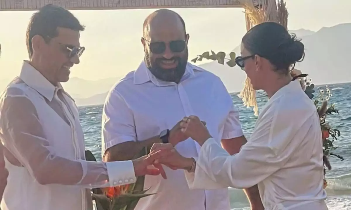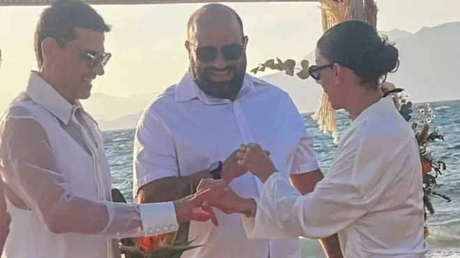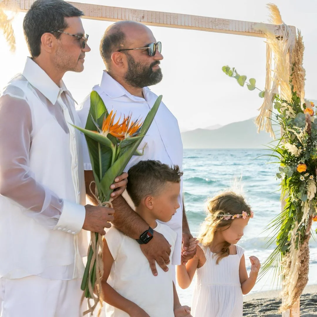 Ο Παντελής Τουτουντζής παντρεύτηκε τον σύντροφό του Νάσο, με κουμπάρα του την Ελένη Φουρέιρα στην παραλία Κομμός στην Κρήτη.