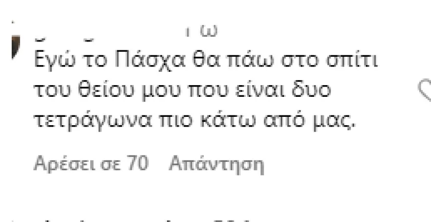 Οι ακόλουθοί της άρχισαν να την κοροϊδεύουν σχετικά με το πού θα πάνε το Πάσχα. Ένας από αυτούς της απάντησε ότι θα πάει μέχρι το σπίτι του θείου του «που είναι 2 τετράγωνα πιο κάτω» και άλλοι της έγραψαν για τα «εξωτικά χωριά τους» με χιουμοριστική διάθεση.