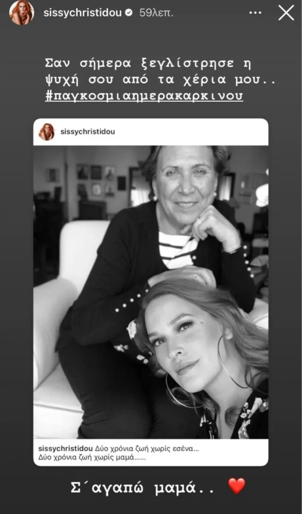 Αυτό που τρόμαζε και μόνο σαν σκέψη τη Σίσσυ Χρηστίδου, τελικά συνέβη πριν από δύο χρόνια και όπως αποδείχτηκε, ήταν αναπόφευκτο! Η πολυαγαπημένη της μητέρα έφυγε από τη ζωή και την είδηση την έκανε γνωστή η ίδια μέσα από τα social media.