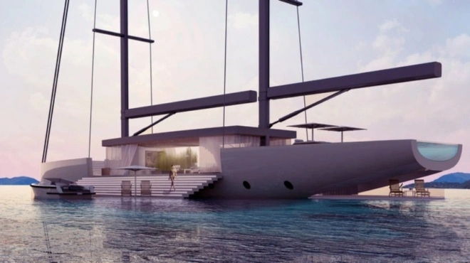 Το υπερπολυτελές γιοτ μήκους πενήντα πέντε μέτρων διαθέτει μια master καμπίνα, δύο VIP και δύο δωμάτια με διπλό κρεβάτι. Επίσης και μια τραπεζαρία δώδεκα ατόμων, ένα κοκτέιλ μπαρ και εσωτερικό κήπο. Αυτό όμως που πραγματικά το κάνει ξεχωριστό είναι το κεντρικό σαλόνι που μοιάζει με γυάλινο κουτί, το οποίο ανοίγει προσφέροντας εκπληκτική θέα στον ωκεανό.