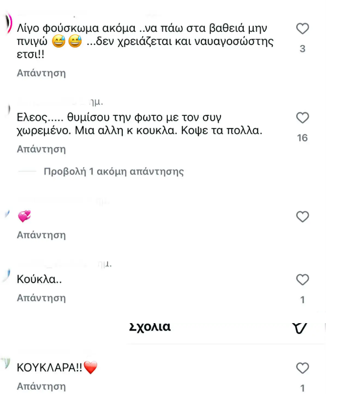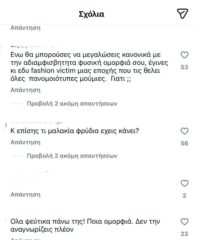 Δες παρακάτω μερικά από τα σχόλια που έγραψαν στο instagram για την Αγγελική Ηλιάδη: