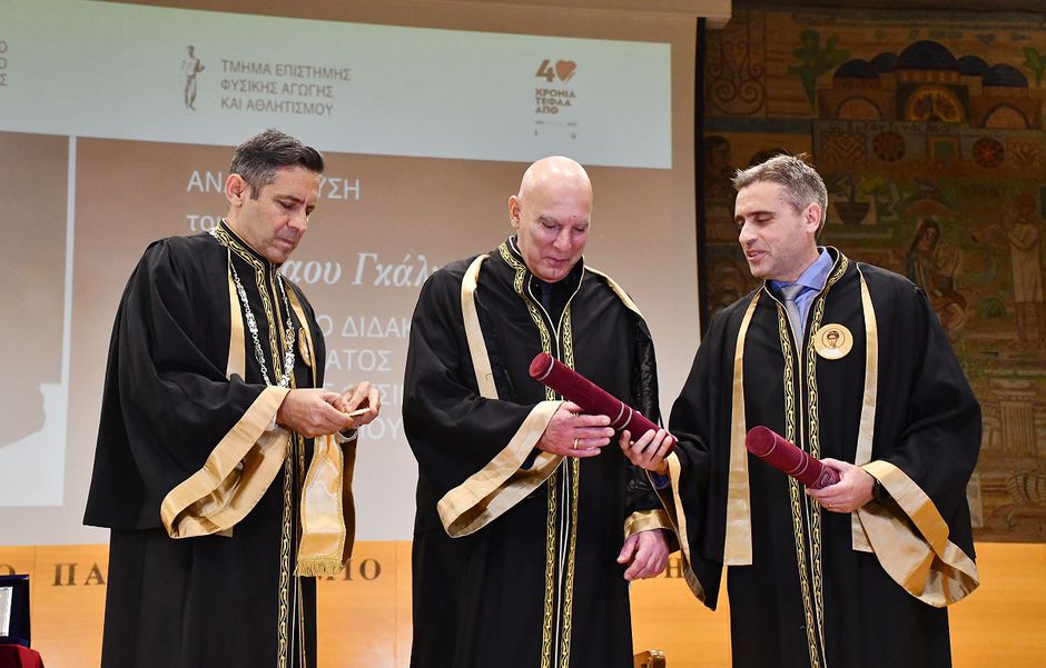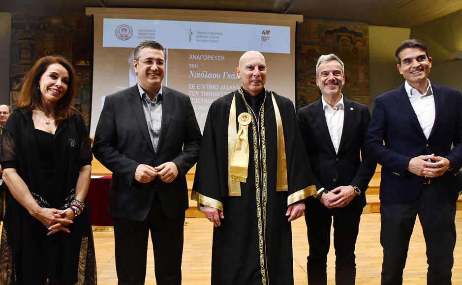 Επίτιμος διδάκτορας του Τμήματος Επιστήμης Φυσικής Αγωγής και Αθλητισμού του ΑΠΘ αναγορεύτηκε την Τρίτη 2/5 ο Νίκος Γκάλης, γνωρίζοντας για ακόμη μία φορά την αποθέωση στην κατάμεστη αίθουσα του Αριστοτέλειου Πανεπιστημίου Θεσσαλονίκης.