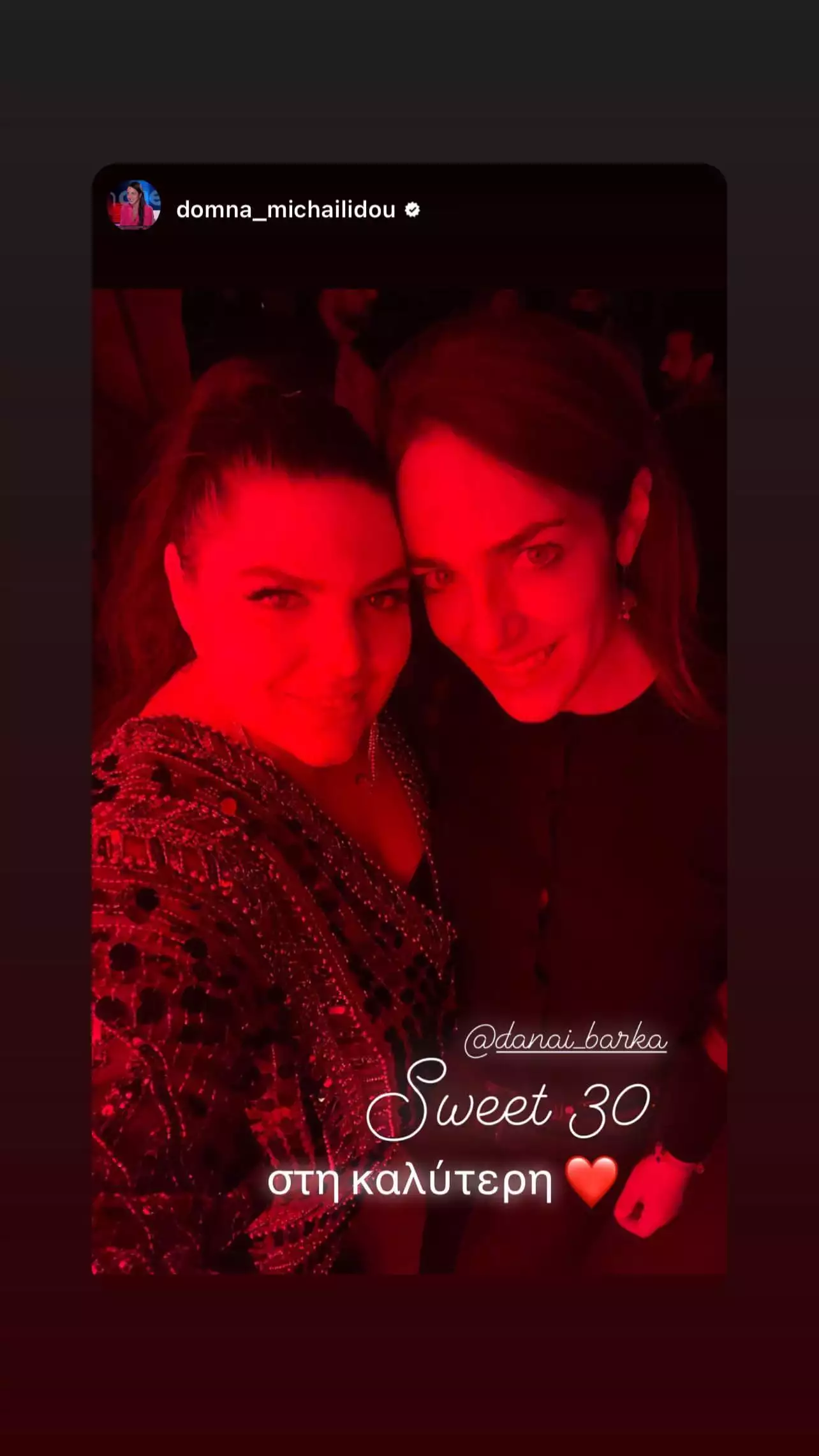 Συγκινητική ήταν και η ανάρτηση της Βίκυς Σταυροπούλου, που ευχήθηκε στη μονάκριβή της με τα εξής λόγια: «Μου φαίνεται σαν όνειρο… Δαναάκι μου, δεν έχω την ικανότητα να χωρέσω σε λέξεις την αγάπη μου που νιώθω για εσένα, σου λέω όμως με βεβαιότητα ότι, χωρίς εσένα, θα είχα στερηθεί την ανάγκη μου να καλυτερεύω σαν άνθρωπος. Αυτό το μικρό μπουμπουκάκι που πρωτοαγκάλιασα πριν 30 χρόνια, έγινε ο κήπος της χαράς μου…Σε ευχαριστώ, είσαι η ανταμοιβή μου..».