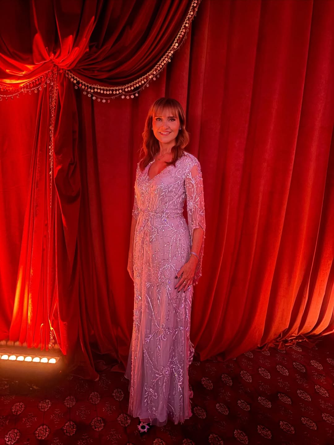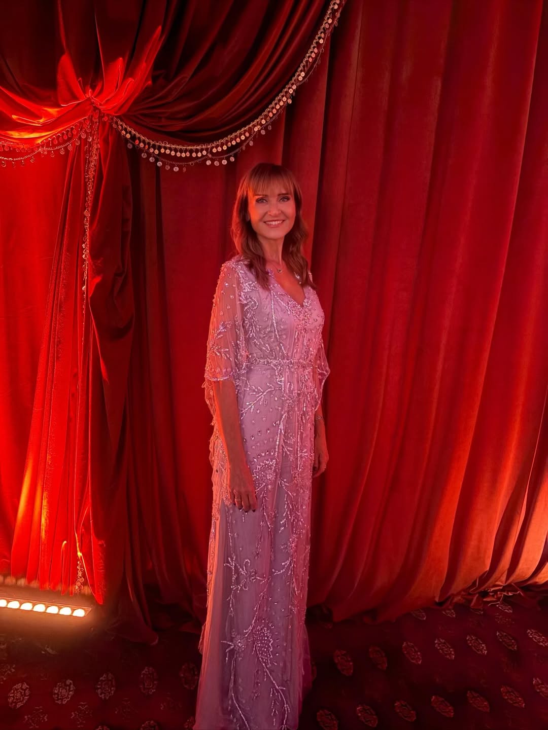 Η εμφάνιση συνδύαζε πολυτέλεια, ραπτική υψηλών προδιαγραφών και μια διακριτική αναφορά στη μαγεία της Ανατολής, αποδίδοντας ένα look που ταίριαζε απόλυτα στο ύφος της βραδιάς.