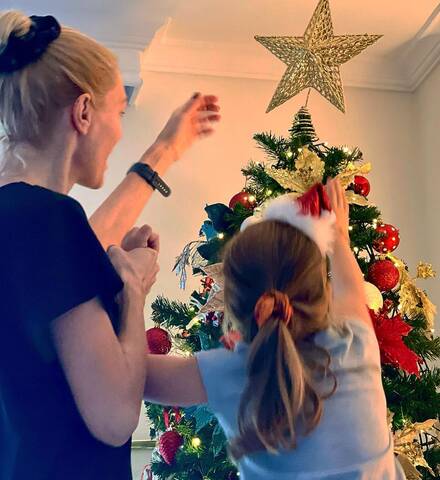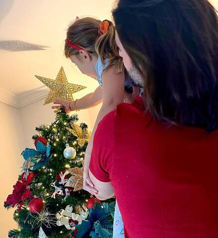 Όπως θα δείτε στην φωτογραφία που δημοσίευσε, η μικρή Θάλεια τοποθετεί το αστέρι στην κορυφή του πολύχρωμου και λαμπερού δέντρου με μια μικρή βοήθεια από τον μπαμπά της Μιχάλη Χατζηαντωνά.
