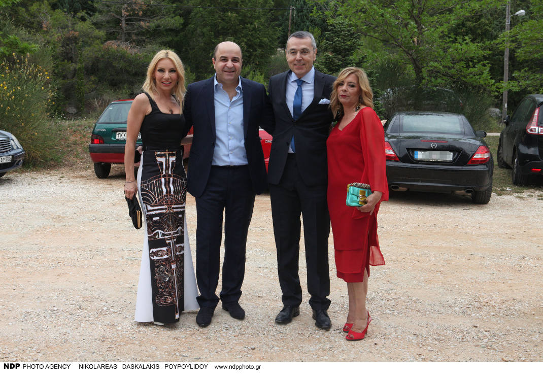 Μαζί, έγινε και η βάπτιση του γιου τους που πήρε το όνομα, Αιμίλιος. Ο ίδιος είχε πει: «Είμαι πάρα πολύ συγκινημένος. Είναι ο πρώτος μου εγγονός που βαφτίζεται. Εύχομαι υγεία, ευτυχία και επιτυχία. Με αυτή τη σειρά. Είναι μια πολύ μεγάλη ημέρα για έναν πατέρα να βλέπει τον γιο του να παντρεύεται. Να κάνει και αυτός παιδιά. Είναι ό,τι πιο όμορφο υπάρχει. Τον χρόνο που δεν μπόρεσα να δώσω στον Βασίλη, έχω υποσχεθεί στον εαυτό μου τουλάχιστον να τον αφιερώσω περισσότερο στον εγγονό μου». Στο πλευρό του, η σύζυγός του, Αθηνά Καραλή. Φορώντας ένα κατακόκκινο φόρεμα, ήταν μια από τις πιο κομψές παρουσίες. Ο Βασίλης Λιάτσος δήλωσε χαρακτηριστικά στην κάμερα: «Λένε ότι είναι μεγάλη ευλογία η βροχή στους γάμους. Αναπτύχτηκε πάρα πολύ έντονα και γρήγορα όλο αυτό μεταξύ μας. Και πολύ αληθινά. Και με μεγάλη ουσία».