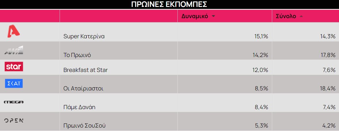 Τα πάνω κάτω έχουν φέρει ορισμένες εκπομπές στην τηλεθέαση, με την «Super Κατερινα» να σαρώνει τα νούμερα και να βρίσκεται στην κορυφή.