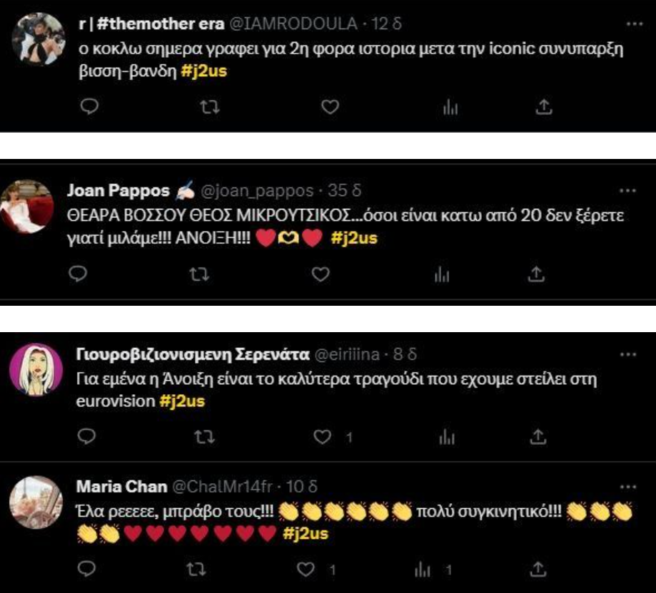 Αυτό που κανείς δεν περίμενε όμως ήταν να δει on stage τον Ανδρέα Μικρούτσικο και την Σοφία Βόσσου να δίνουν πραγματικό ρεσιτάλ ερμηνείας, ερμηνεύοντας την «Άνοιξη», το τραγούδι με το οποίο μας είχαν εκπροσωπήσει στον διαγωνισμό της Eurovision το 1991!