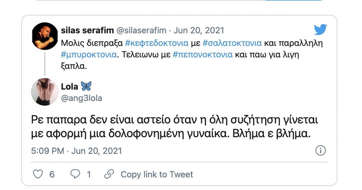 «Δεν είναι αστείο όταν η όλη συζήτηση γίνεται με αφορμή μια δολοφονημένη γυναίκα» τόνισε χαρακτηριστικά ένας χρήστης.