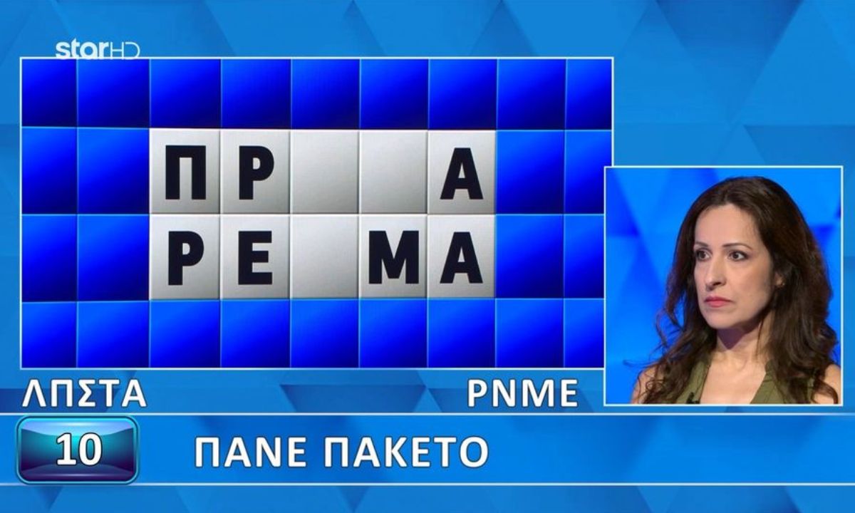 Πέντε γράμματα είχε η κάθε λέξη. Στην πρώτη είχαν ανοίξει τα τρία, στη δεύτερη τα τέσσερα από τα πέντε. Κι όμως, δεν μπόρεσε να κρατήσει την ψυχραιμία της και αν δώσει τη λύση. Ο Πέτρος Πολυχρονίδης δεν το πίστευε, κόντεψε να λύσει τον γρίφο αυτός.
