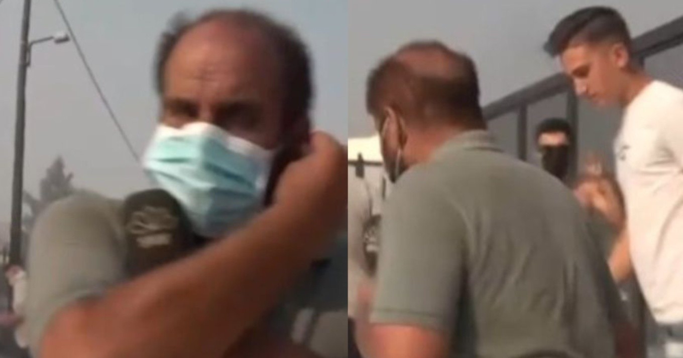 Την ώρα που εκείνος μετέδιδε τα όσα συνέβαιναν μπροστά στα μάτια του, νεαροί κάτοικοι, αγανακτισμένοι που έβλεπαν τις περιουσίες τους να γίνονται στάχτη, προπηλάκισαν τον δημοσιογράφο ο οποίος όμως με κατανόηση σε αυτή την τραγωδία που ζουν, έλεγε συνεχώς «δεν πειράζει, δεν πειράζει, εμείς συνεχίζουμε το ρεπορτάζ» αγνοώντας με σεβασμό τις χειρονομίες εναντίον του.