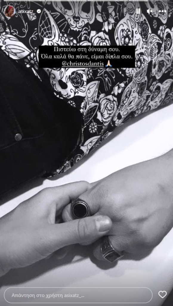 Στη συνέχεια, η Ασημίνα Χατζηανδρέου δημοσίευσε ακόμη μια φωτογραφία στην οποία τη βλέπουμε να κρατά το χέρι του αγαπημένου της Χρήστου Δάντη και έγραψε, «Πιστεύω στη δύναμή σου. Όλα καλά θα πάνε. Είμαι δίπλα σου».