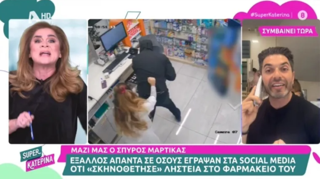 Ειδικότερα, ο φαρμακοποιός και πρώην παίκτης του Survivor, σε ζωντανή σύνδεση, μίλησε για την ληστεία στο φαρμακείο του, ενώ νωρίτερα, η Έλενα Πολυκάρπου είχε παρουσιάσει μερικά tweets, που έγραφαν ότι η ληστεία ήταν σκηνοθετημένη.