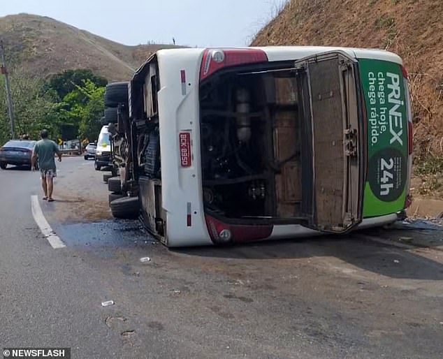 Οι σοκαριστικές εικόνες που δημοσίευσαν τα βραζιλιάνικα μέσα ενημέρωσης έδειχναν το λεωφορείο πεσμένο στο πλάι με αρκετά πάνελ σκισμένα.