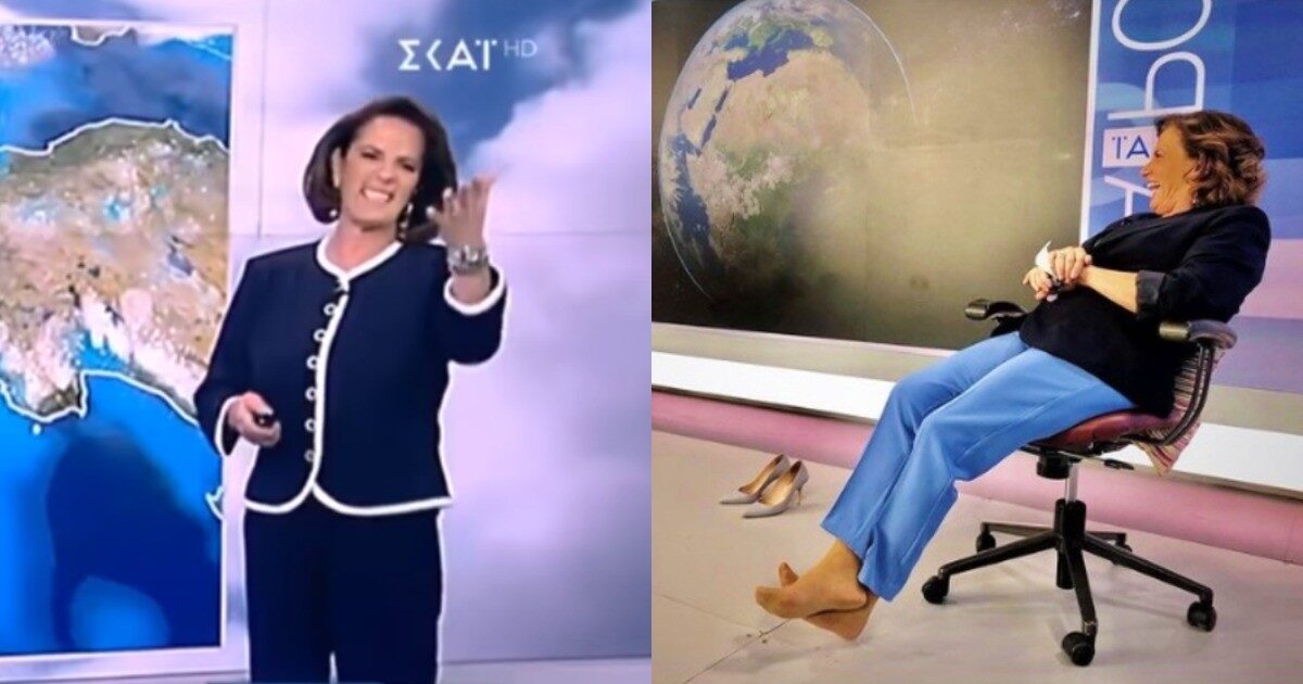 Αυτή τη φορά, όμως, η μετεωρολόγος του ΣΚΑΙ δημοσίευσε μια μοναδική φωτογραφία από το πλατό των ειδήσεων, στην οποία κάθεται αναπαυτικά στην καρέκλα πριν την έναρξη του νοηματικού δελτίου και έχει ήδη γίνει viral, αφού έχει βγάλει τα παπούτσια της.