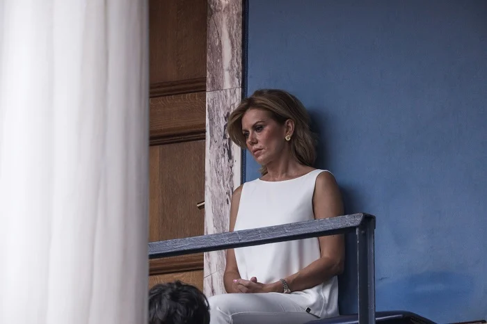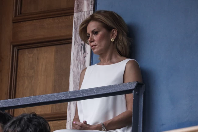 Η σύζυγος του Άδωνη Γεωργιάδη κάθισε μόνη της σε ένα από τα θεωρεία της Βουλής και ο φωτογραφικός φακός του Γιώργου Κονταρίνη, του πρακτορείου Eurokinissi, την απαθανάτισε να παρακολουθεί απορροφημένη τα όσα διαδραματίζονταν στην αίθουσα της Ολομέλειας.