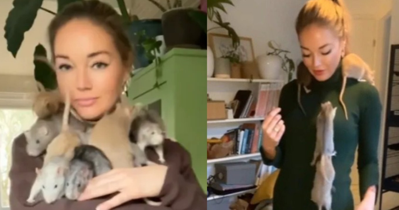 Μάλιστα, φαίνεται στα βίντεο, οι αρουραίοι είναι ιδιαίτερα διαχυτικοί με την ιδιοκτήτριά τους, καθώς σκαρφαλώνουν συνεχώς πάνω της.