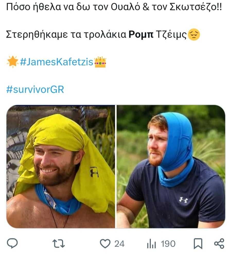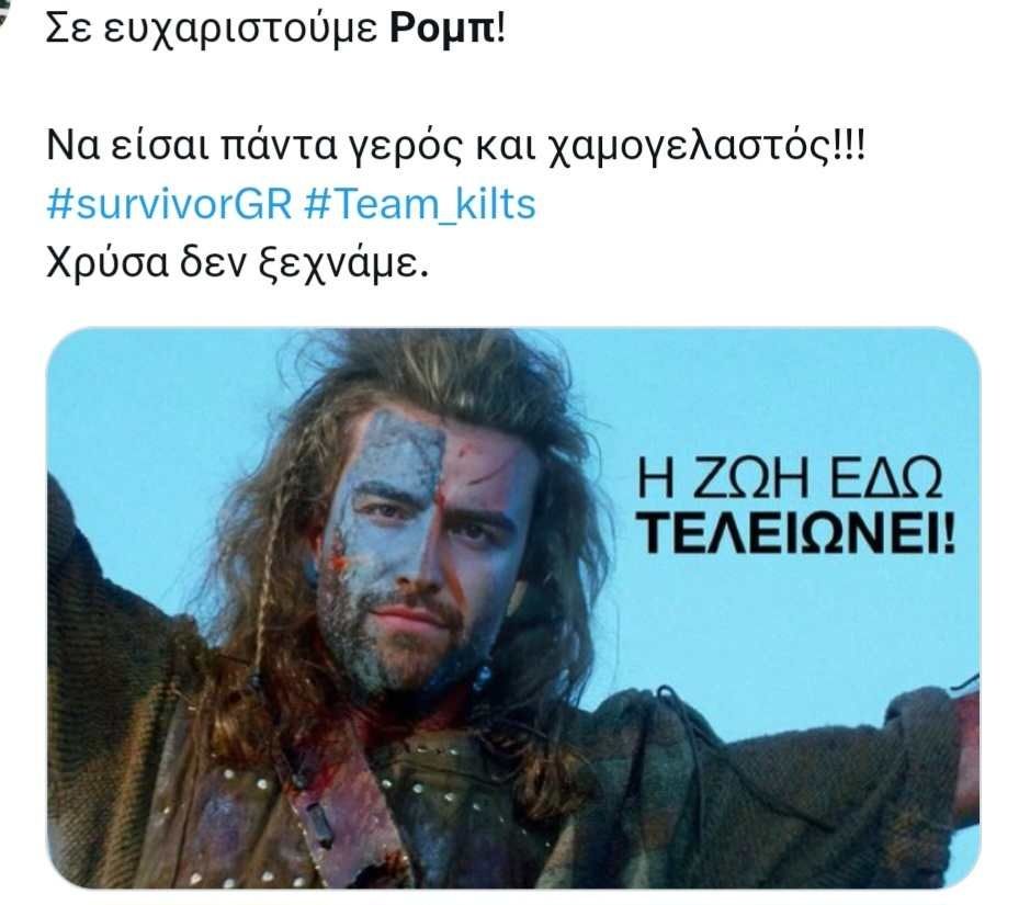 H μεγαλύτερη επιτυχία του Ρομπ ήταν οτι ως πιο αγωνιστικά αδυναμος παίκτης, έχασε από τους 2 πιο δυνατούς…#survivorGR #Team_kilts pic.twitter.com/ZzkwirZGbi