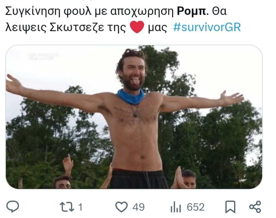 Ρομπ καλή επιστροφή#survivorGR pic.twitter.com/LYfrfUxwHR