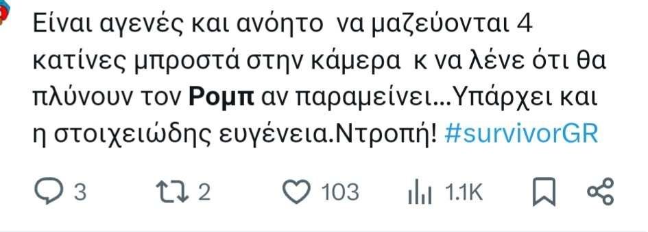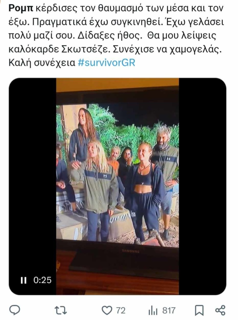 Μπραβο σου Ρομπ άφησες τις καλυτερες εντυπώσεις !!👏👏👏ολο το twitter σε εκτιμάει κ σαγαπαει 👏❤️#survivorGR