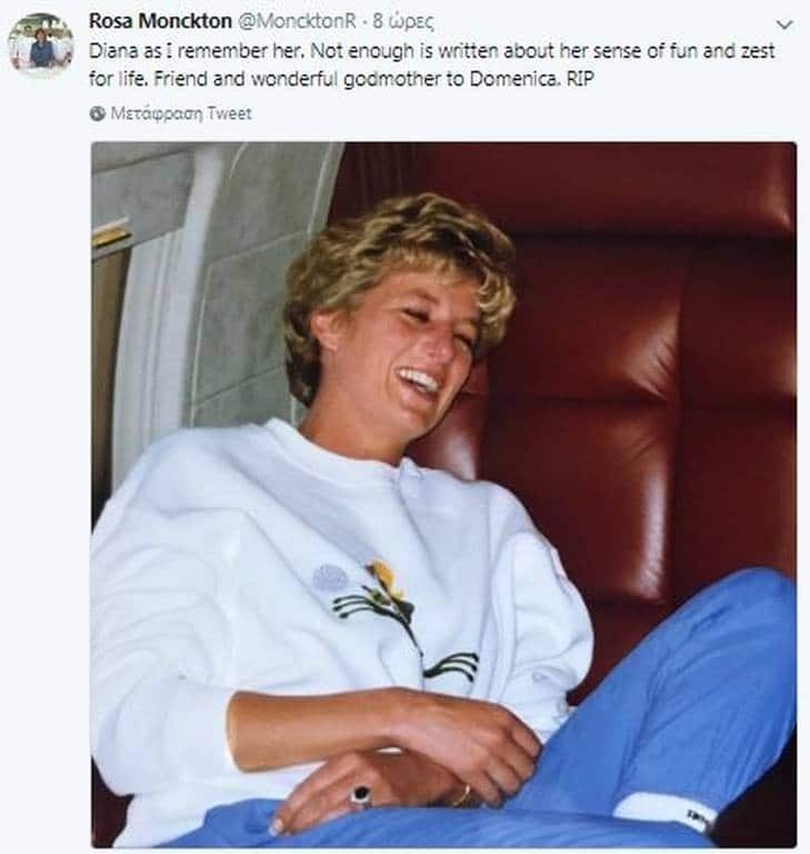 Με την συμπλήρωση των 25 χρόνων από το θάνατό της, η στενή φίλη της, Rosa Monckton, της οποίας είχε βαφτίσει την κόρη, μοιράστηκε μία αδημοσίευτη φωτογραφία της πριγκίπισσας στον λογαριασμό της στο Twitter.