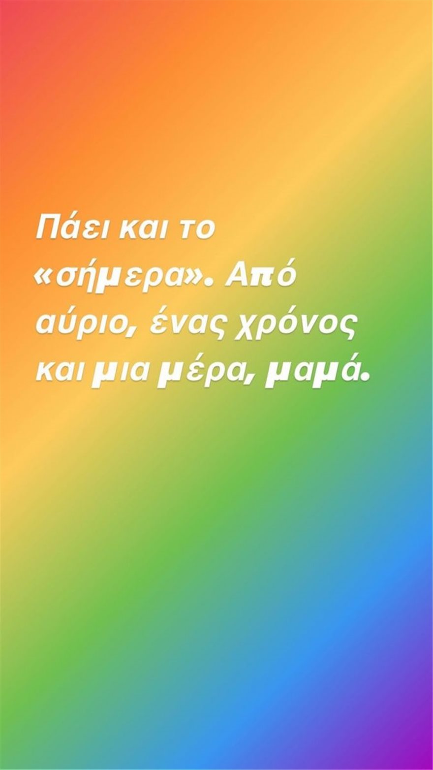 Από τότε πέρασε ένας ολόκληρος χρόνος και ο Δημήτρης Ουγγαρέζος θέλησε με τον δικό του τρόπο να μοιραστεί αυτή την τόσο δύσκολη στιγμή του με τους διαδικτυακούς του φίλους κάνοντας την εξής ανάρτηση: «Πάει και το «σήμερα». Από αύριο, ένας χρόνος και μια μέρα, μαμά» έγραψε πολύ πρόσφατα ο παρουσιαστής και φυσικά τα σχόλια συμπαράστασης και οι ευχές έπεσαν αμέσως μετά από αυτό, βροχή.