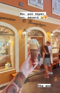 «Και εκεί που χάζευα πόσο όμορφη είναι η Κέρκυρα, μου πάτησε καταλάθος ένα αυτοκίνητο το πόδι. Και πήγαμε στο γιατρό και τα καλά νέα είναι ΔΕΝ ΚΑΤΑΛΑΒΑΙΝΩ ΤΙΠΟΤΑ. Και μού πήραν και παγωτό. The end», έγραψε χαρακτηριστικά.