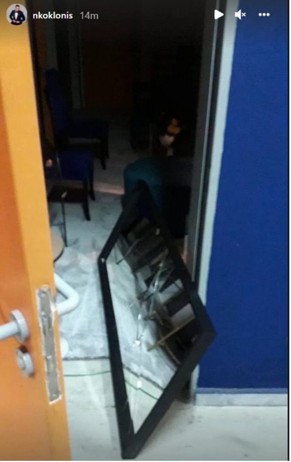 Η εκπομπή της Κατερίνας Καινούργιου, «Super Κατερίνα» παρουσίασε φωτογραφικό υλικό από το σημείο που έχει βανδαλιστεί ενώ όπως ανέφερε η παρουσιάστρια, το καμαρίνι του Νίκου Κοκλώνη, είναι μεγάλο κι είχε περισσότερα προσωπικά αντικείμενα από ότι έχει ένα συνηθισμένο καμαρίνι.
