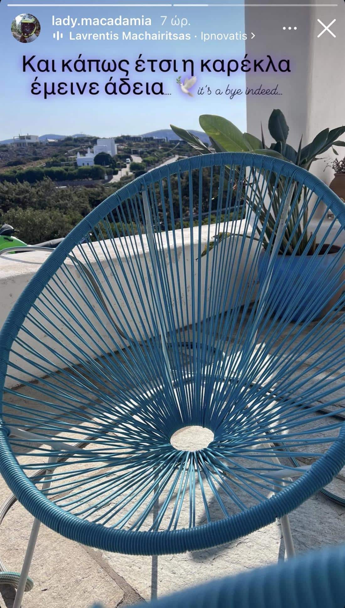 Η ίδια φωτογράφισε μια άδεια καρέκλα στην βεράντα του σπιτιού τους και έγραψε: «Και κάπως έτσι η καρέκλα έμεινε άδεια. Είναι πράγματι αντίο».