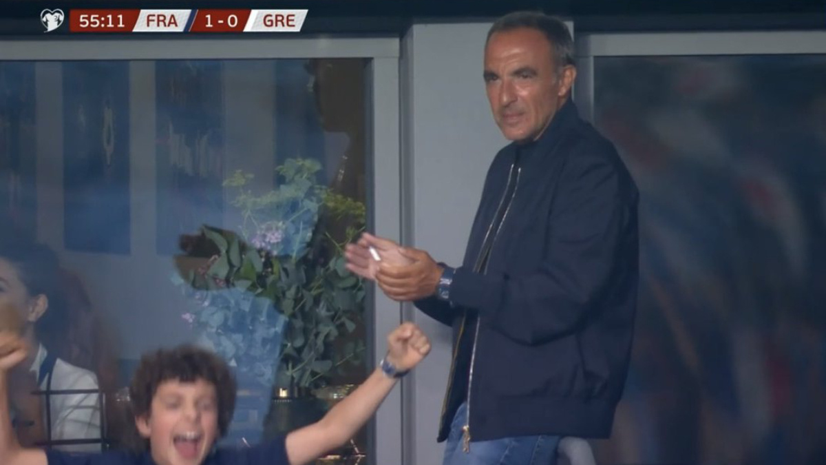 Αναλυτικότερα, ο Μπαπέ σημειώνει το τέρμα για το 1-0 της Γαλλίας και ακολούθως η κάμερα έδειξε τον παρουσιαστή, ο οποίος βρισκόταν στο γήπεδο για να παρακολουθήσει από κοντά τον αγώνα, να χειροκροτεί το γκολ του Μπαπέ απέναντι στην Ελλάδα.